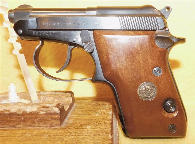 BERETTA 21A IN .22 CAL., WITH 2 .5" BARREL. COLOR BLUE. CONDITION 97%. SERIAL NUMBER A141566. BERETTA MODEL 21A (TIP UP) IN .22 CALIBER, MIRROR BORE, WALNUT GRIPS EXCELLENT, COMES WITH ONE FACTORY MAGAZINE, 97% OVERALL CONDITION, OUR STOCK # D7908. OUR OLD STOCK # YA16112