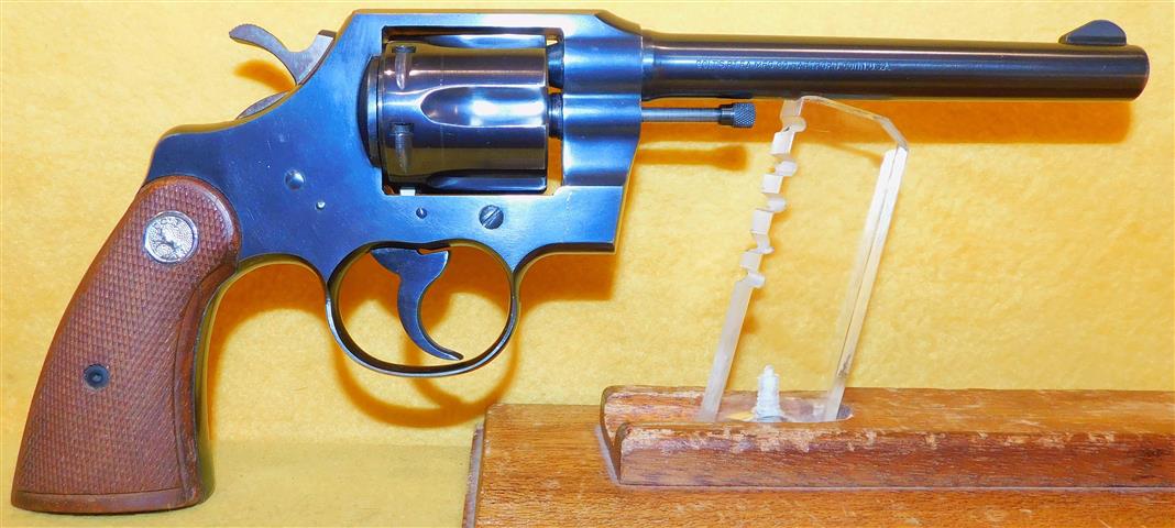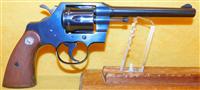 COLT OFFICIAL POLICE IN .22 L.R. CAL., WITH 6" BARREL. COLOR BLUE. CONDITION 95%+. SERIAL NUMBER 44127. COLT MODEL OFFICIAL POLICE (CIRCA 1960) IN .22 L.R. CALIBER, MIRROR BORE, WALNUT CHECKERED GRIPS EXCELLENT, 95%+ OVERALL CONDITION, OUR STOCK # D6042. OUR OLD STOCK # YA15296