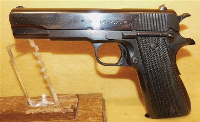 COLT ARGENTINE 1927 IN .45 ACP CL., WITH 5" BARREL. COLOR BLUE. CONDITION 95%. SERIAL NUMBER 83856. COLT MODEL ARGENTINE 1927 IN .45 ACP CALIBER, BRIGHT SHINY BORE, GRIPS EXCELLENT, COMES WITH ONE MAGAZINE, 95% OVERALL CONDITION, OUR STOCK # D7900. OUR OLD STOCK # YA16039