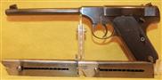 COLT PRE-WOODSMAN IN .22 CAL., WITH 6 .75 BARREL. COLOR BLUE. CONDITION 95%. SERIAL NUMBER 12117. COLT MODEL PRE-WOODSMAN (CIRCA 1920) IN .22 CALIBER, MIRROR BORE, ORIGINAL WALNUT CHECKERED GRIPS EXCELLENT, BARREL HAS BEEN THREADED WITH A THREAD PROTECTOR PLACED ON IT, COMES WITH THREE FACTORY TWO TONE MAGAZINES, ORIGINAL PERIOD HOLSTER, 95% OVERALL CONDITION, OUR STOCK # D8484. OUR OLD STOCK # YA16219