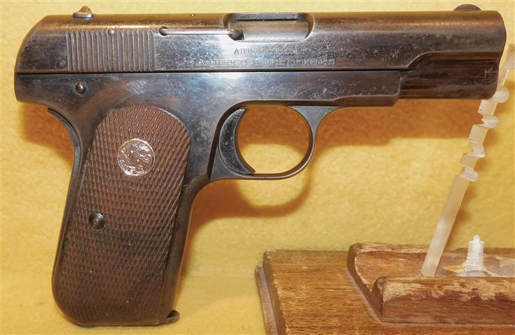 COLT 1903 IN .32 ACP CAL., WITH 3 .5" BARREL. COLOR BLUE. CONDITION 85%+. SERIAL NUMBER 137552. COLT MODEL 1903 (CIRCA 1912) IN .32 ACP CALIBER, MIRROR BORE, CHECKERED WALNUT GRIPS EXCELLENT, COMES WITH ONE TWO TONE FACTORY MAGAZINE, 85%+ OVERALL CONDITION, OUR STOCK # D8381. OUR OLD STOCK # YA16222