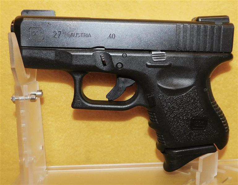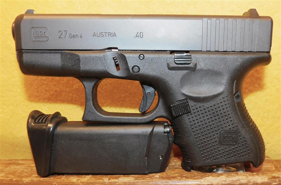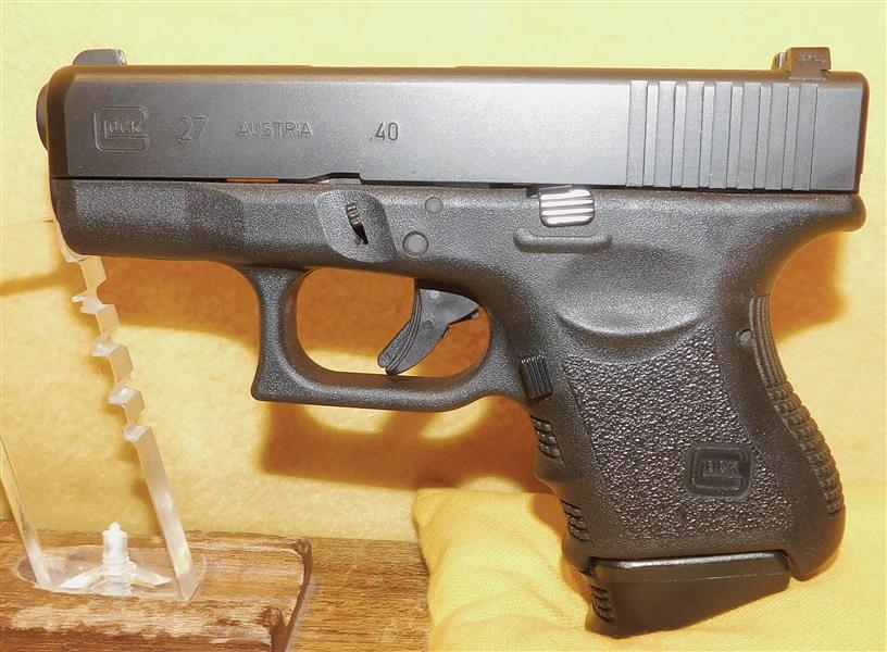 GLOCK 27 (NOT FOR SALE IN MASS.) IN .40 CAL., WITH 3.5" BARREL. COLOR MATTE. CONDITION 98%. SERIAL NUMBER MVW114. GLOCK MODEL 27 (NOT FOR SALE IN MASS.) IN .40 CALIBER, MIRROR BORE, GRIPS EXCELLENT, COMES WITH ON FACTORY MAGAZINE, 98% OVERALL CONDITION, OUR STOCK # D7097. OUR OLD STOCK # YA15675