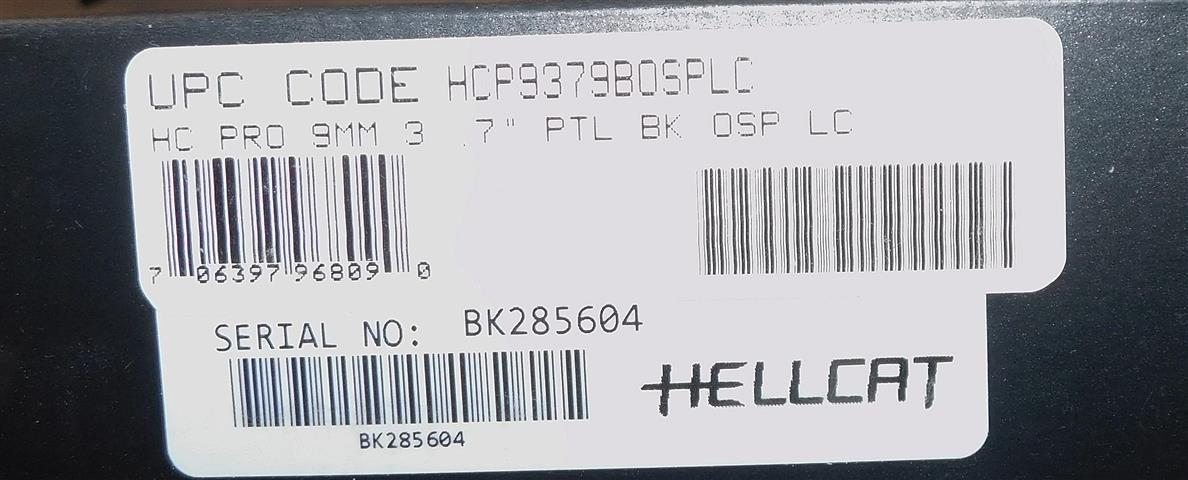 SPRINGFIELD ARMORY HELLCAT PRO IN 9MM CAL., WITH 3.7" BARREL. COLOR BLACK. CONDITION NEW IN BOX. SERIAL NUMBER BK285604. SPRINGFIELD ARMORY MODEL HELLCAT PRO, COMES WITH TWO FACTORY MAGAZINES, SOFT POUCH, BOX WITH PAPERS, NEW IN BOX OVERALL CONDITION, OUR STOCK # D8234. OUR OLD STOCK # YA16161