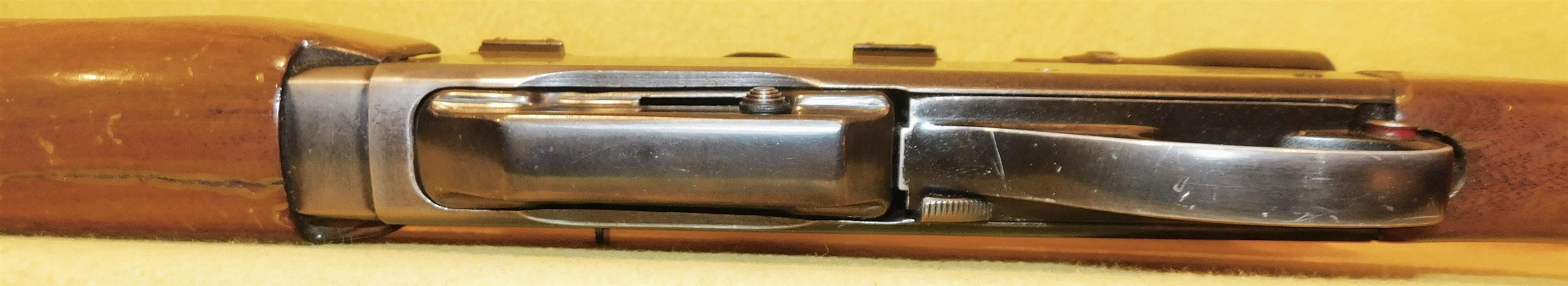 SAVAGE 99-F IN .300 CAL., WITH 24" BARREL. COLOR BLUE. CONDITION 95%+. SERIAL NUMBER 605649. SAVAGE MODEL 99-F (CIRCA 1954) (BUILT AT CHICOPEE FALLS MASSACHUSETTS) IN .300 SAVAGE CALIBER, BRIGHT SHINY BORE, CHECKERED WALNUT STOCK WITH FORE END EXCELLENT, FACTORY REAR RISER PEEP SITE, BRASS SHELL COUNTER, 95%+ OVERALL CONDITION, OUR STOCK # D6162. OUR OLD STOCK # YA15389