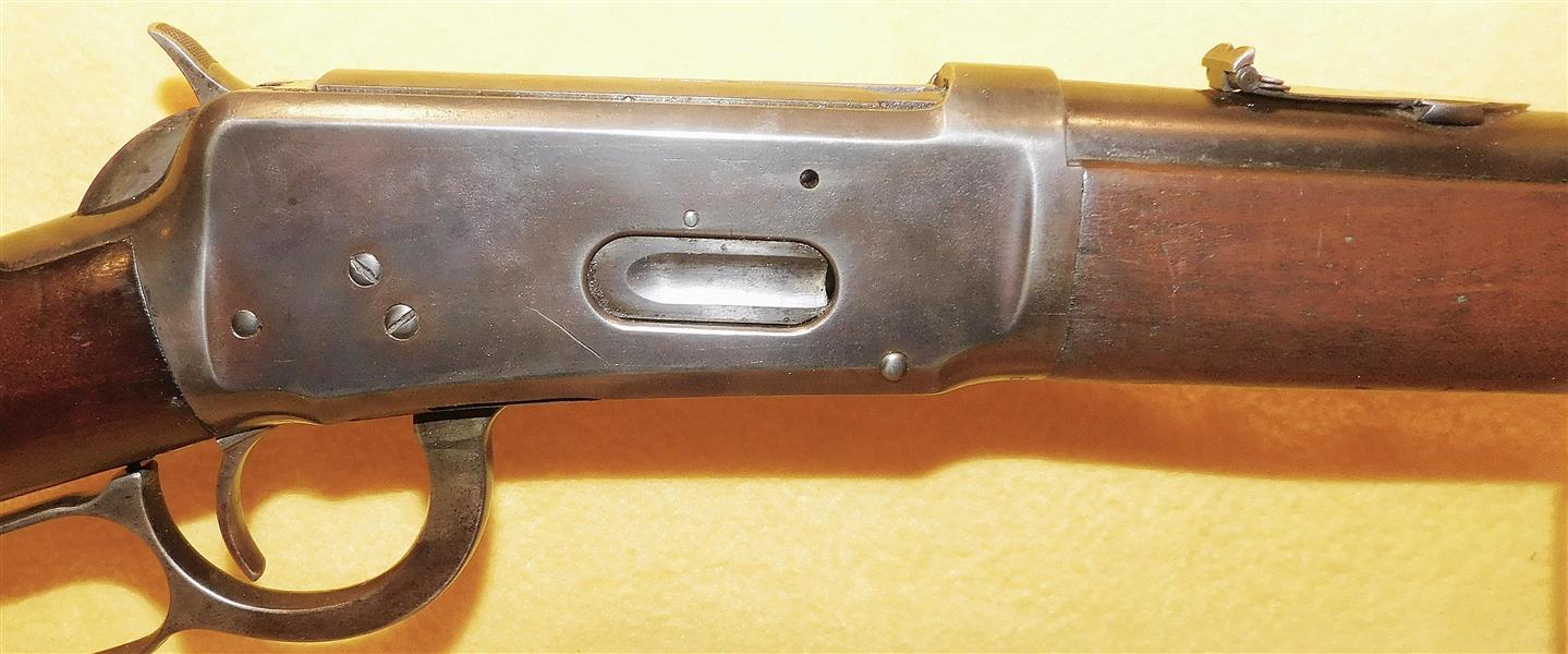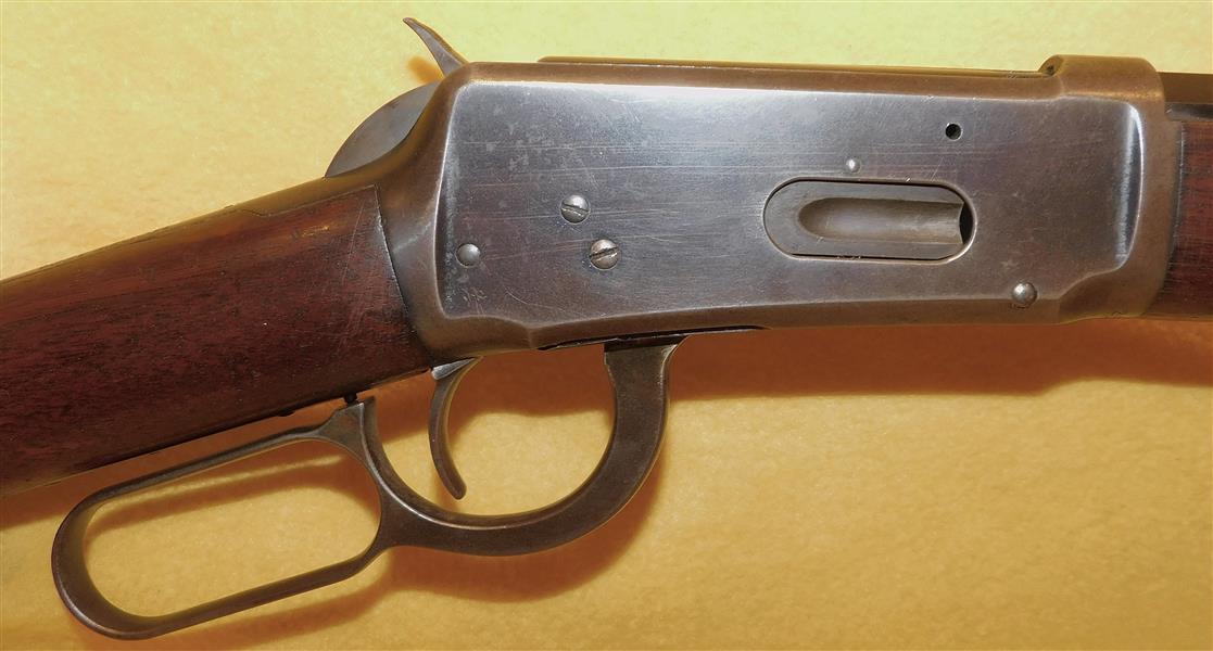 WINCHESTER 1894 IN .32-40 CAL., WITH 26" BARREL. COLOR BLUE. CONDITION 70%. SERIAL NUMBER 231844. WINCHESTER MODEL 1894 (CIRCA 1901) IN .32-40 CALIBER, HALF OCTAGON BARELL WITH BRIGHT SHINY BORE WITH GOOD STRONG RIFLING, STOCK IS VERY GOOD WITH ORIGINAL BUTT PLATE, FORE ARM HAS BEEN SANDED DOWN WHERE PEACH WAS REMOVED ON THE LEFT SIDE, 70% OVERALL CONDITION, OUR STOCK # D7526. OUR OLD STOCK # YA15877