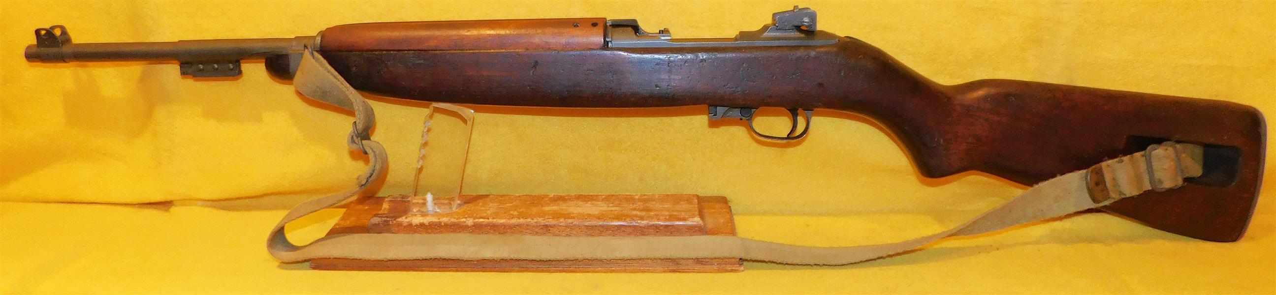 SAGINAW U.S. M1 CARBINE IN .30 CARBINE CAL., WITH 18" BARREL. COLOR PARKERIZED. CONDITION 85%+. SERIAL NUMBER 3451826. SAGINAW MODEL U.S. M1 CARBINE (CIRCA AUG. 1943) IN .30 CARBINE CALIBER, MIRROR BORE, WINCHESTER TRIGGER GROUP, UNDERWOOD 1944 BARREL, WALNUT POT BELLY M2 STOCK VERY GOOD, MADE IN SAGINAW STEERING GEAR ( SAGINAW PLANT), COMES WITH ORIGINAL SLING AND ONE FACTORY MAGAZINE MARKED (MM) 85%+ OVERALL CONDITION, OUR STOCK # D8652. OUR OLD STOCK # YA16249