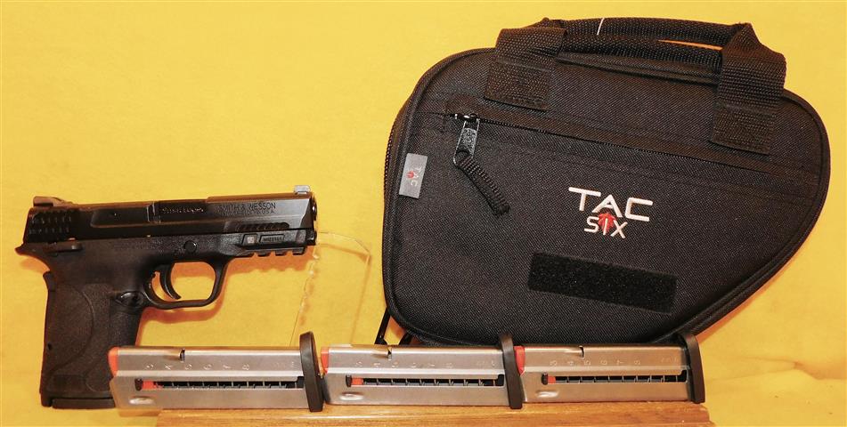 S&W M&P9 (CTC LASER) IN 9MM CAL., WITH 4 .25" BARREL. COLOR BLACK. CONDITION 98%+. SERIAL NUMBER HPX0747. S&W MODEL M&P9 WITH CTC LASER GRIPS IN 9MM CALIBER, MIRROR BORE, LASER GRIPS EXCELLENT, COMES WITH ONE FACTORY MAGAZINE WITH HARD CASE, 98%+ OVERALL CONDITION, OUR STOCK # D7313. OUR OLD STOCK # YA15733