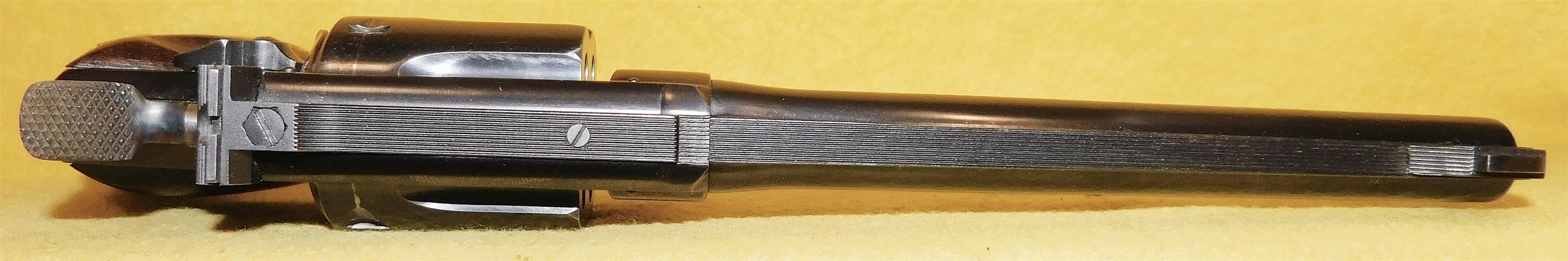 S&W (POST-WAR) PRE-MODEL10 IN .38 SPECIAL CAL., WITH 6" BARREL. COLOR BLUE. CONDITION 96%+. SERIAL NUMBER C430663. S&W MODEL PRE-MODEL 10 (POST-WAR) IN .38 SPECIAL CALIBER, MIRROR BORE, BONE GRIPS EXCELLENT, 96%+ OVERALL CONDITION, OUR STOCK # D7907. OUR OLD STOCK # YA16032