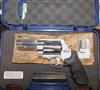 S&W 500 IN .500 CAL., WITH 4" BARREL. COLOR STAINLESS STEEL. CONDITION 98%+ UNFIRED. SERIAL NUMBER DPK8342. S&W MODEL 500 S&W IN .500 S&W CALIBER, MIRROR BORE, GRIPS EXCELLENT, COMES WITH TWO MUZZLE BREAKS, HARD CASE WITH PAPERS, 98%+ UNFIRED OVERALL CONDITION, OUR STOCK # D7634. OUR OLD STOCK # YA15848
