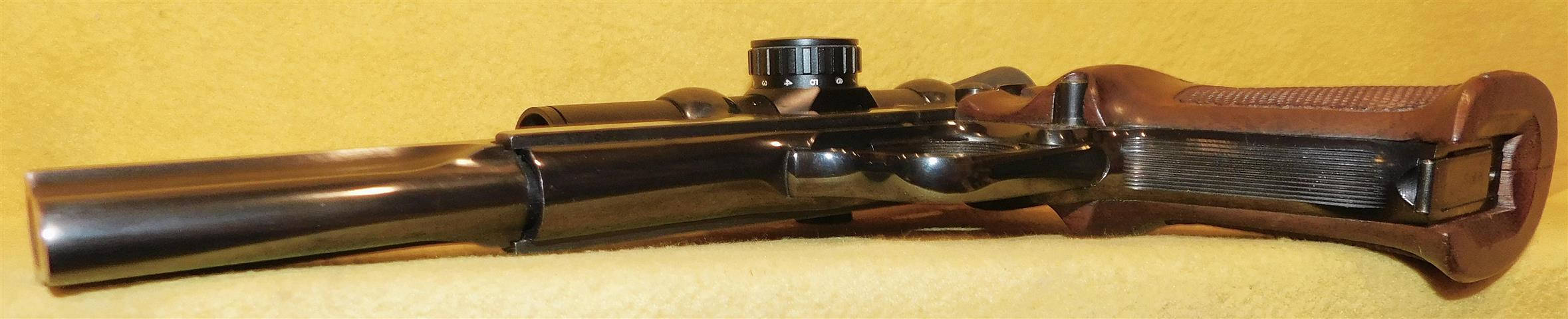 S&W 41 IN .22 L.R. CAL., WITH 7" BARREL. COLOR BLUE. CONDITION 96%+. SERIAL NUMBER 21539. S&W MODEL 41 IN .22 L.R. CALIBER, MIRROR BORE, WANUT CHECKERED TARGET GRIPS EXCELLENT, LOAD PIN ON RECEIVER BACK, COMES WITH TWO FACTORY MAGAZINES, MILLOTT RED DOT SCOPE, 96%+ OVERALL CONDITION, OUR STOCK # D7470. OUR OLD STOCK # YA15856