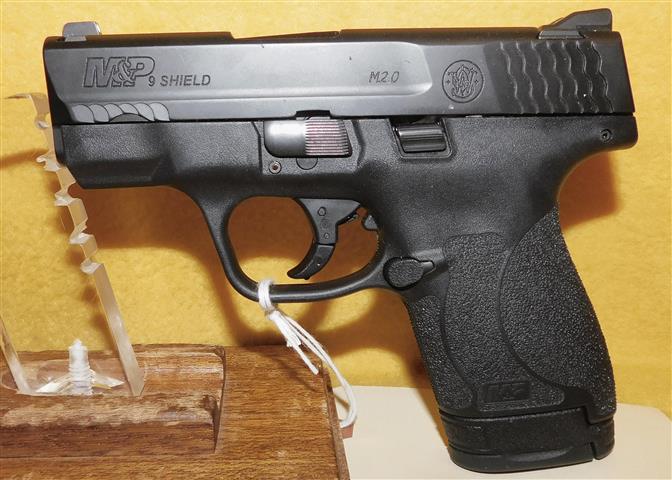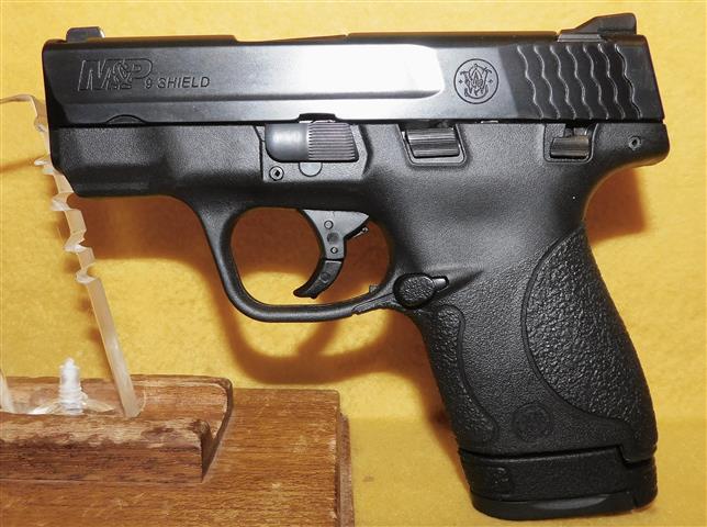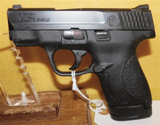 S&W M&P 9 SHIELD IN 9MM CAL., WITH 3 .125" BARREL. COLOR BLACK. CONDITION 96%+. SERIAL NUMBER HDS0753. S&W MODEL M&P 9 SHIELD IN 9MM CALIBER, MIRROR BORE, GRIPS EXCELLENT, COMES WITH TWO FACTORY MAGAZINES, 96%+ OVERALL CONDITION, OUR STOCK # D7645. OUR OLD STOCK # YA15884