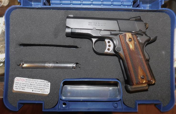 S&W 1911 PRO-SERIES IN .45 ACP CAL., WITH 3" BARREL. COLOR BLACK. CONDITION 96%+. SERIAL NUMBER UCU0962. S&W 1911 PRO-SERIES IN .45 ACP CALIBER, MIRROR BORE GRIPS EXCELLENT, (WOOD PIUS ORIGINAL), HARD CASE WITH PAPERS, 96%+ OVERALL CONDITION, OUR STOCK # D7990. OUR OLD STOCK # YA16045