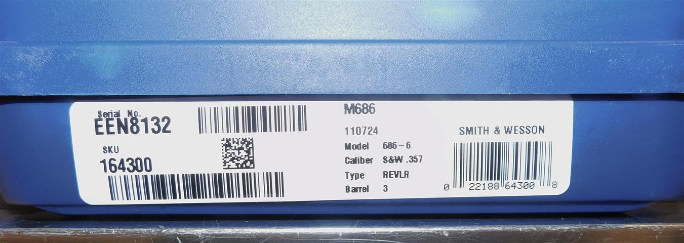S&W 686-6 IN .357 MAGNUM CAL., WITH 3" BARREL. COLOR STAINLESS STEEL. CONDITION NEW IN BOX. SERIAL NUMBER EEM8132. . OUR OLD STOCK # YA16047