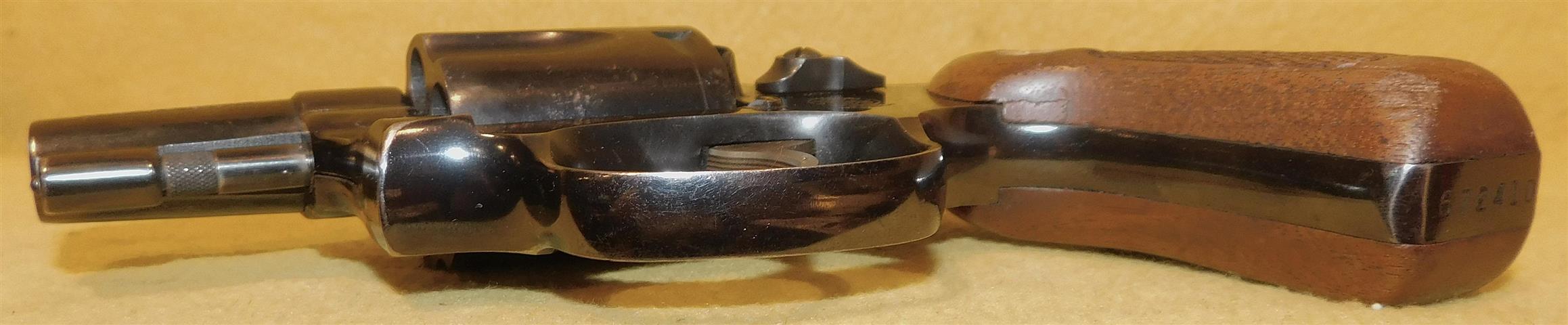 S&W 36 IN .38 SPECIAL CAL., WITH 2" BARREL. COLOR BLUE. CONDITION 95%+. SERIAL NUMBER 672410. S&W MODEL 36 IN .38 SPECIAL CALIBER, MIRROR BORE, WALNUT GRIPS VERY GOOD TO EXCELLENT, 95%+ OVERALL CONDITION, OUR STOCK# D7902. OUR OLD STOCK # YA16051