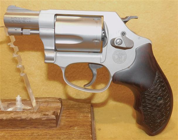 S&W 642-2 IN .38 SPECIAL CAL., WITH 2" BARREL. COLOR SILVER. CONDITION 90%. SERIAL NUMBER CJR3779. S&W MODEL 642-2 IN .38 SPECIAL CALIBER, MIRROR BORE, SMOOTH WALNUT GRIPS VERY GOOD, CONDITION IS COSMETICALLY CHALLENGED, MECHANICALLY SOUND, GREAT NO CARE LIGHT WEIGHT POCKET FIREARM, 90% OVERALL CONDITION, OUR STOCK # D7961. OUR OLD STOCK # YA16066
