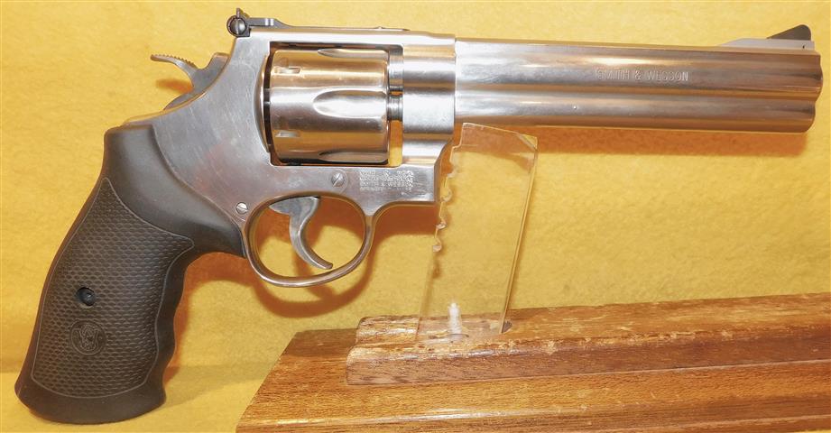 S&W 610-3 IN 10 MM CAL. WITH 6 .5" BARREL. COLOR STAINLESS STEEL. CONDITION 98%. SERIAL NUMBER DPX1632. S&W MODEL 610-3 IN 10MM CALIBER, MIRROR BORE, RUBBER RIPS EXCELLENT, COMES WITH ONE FULL MOON CLIP, 98% OVERALL CONDITION, OUR STOCK # D8468. OUR OLD STOCK # YA16207