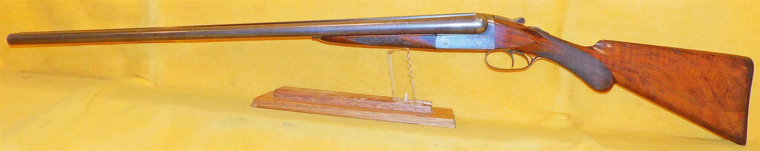 REMINGTON (ANTIQUE) 1894 HAMMERLESS IN 12 GA. CAL., WITH 30" BARREL. COLOR BLUE. CONDITION 85%+. SERIAL NUMBER 11799. REMINGTON MODEL 1894 HAMMERLESS (ANTIQUE) IN 12 GUAGE CALIBER, TWO BEAD DAMASCUS TWIST STEEL BARRELS HAVE DARKER BORES WITH SOME BLACK POWDER PITTING, WALNUT CHECKERED STOCK AND FORE ARM GOOD TO VERY GOOD CONDITION 85%+ OVERALL CONDITION, OUR STOCK # A30. OUR OLD STOCK # YA15322