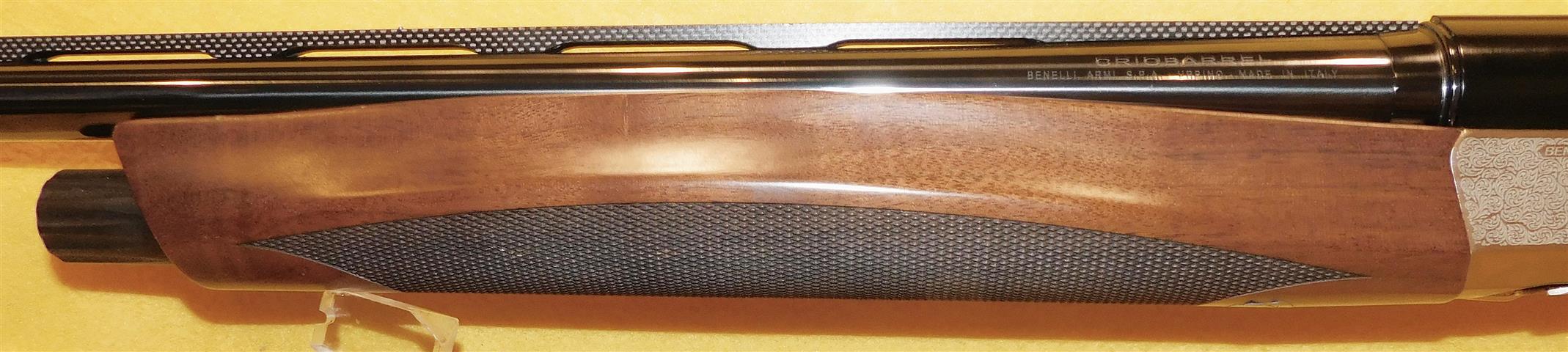 BENELLI ETHOS IN 12 GA. CAL., WITH 28" BARREL. COLOR SILVER. CONDITION 98%. SERIAL NUMBER F370361J18. BENELLI MODEL ETHOS (SEMI AUTO) IN 12 GUAGE CALIBER, TWO BEAD VENT MIRROR BORE BARREL WITH FIVE SCREW IN CHOKES (FULL, IMPROVED, MODIFIED, IMPROVED CYLINDER, CYLINDER), WALNUT STOCK AND FOREARM EXCELLENT, STOCK NECK SHIMS, HARDCASE WITH PAPERS, 98% OVERALL CONDITION, OUR STOCK # D7438. OUR OLD STOCK # YA15797