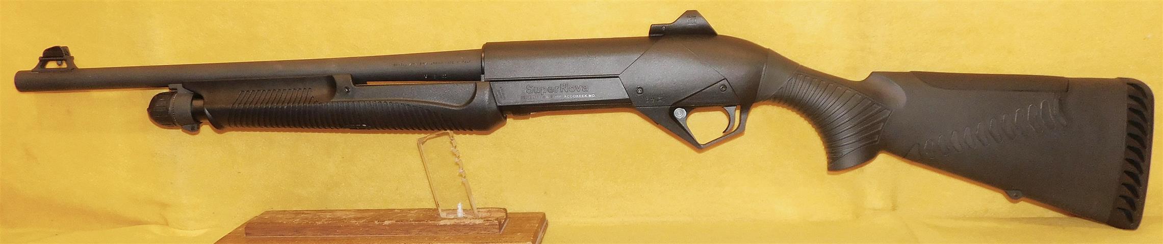 BENELLI NOVA IN 12 GA CAL., WITH 18" BARREL. COLOR BLACK. CONDITION 98%. SERIAL NUMBER Z0978994D. BENELLI MODEL NOVA TACTICAL (PUMP) IN .12 GUAGE CALIBER, MIRROR BORE, REAR ADJUSTABLE RIFLE SIGHT WITH FRONT COMBAT SIGHT, 98% OVERALL CONDITION, OUR STOCK # D7590. OUR OLD STOCK # YA15824