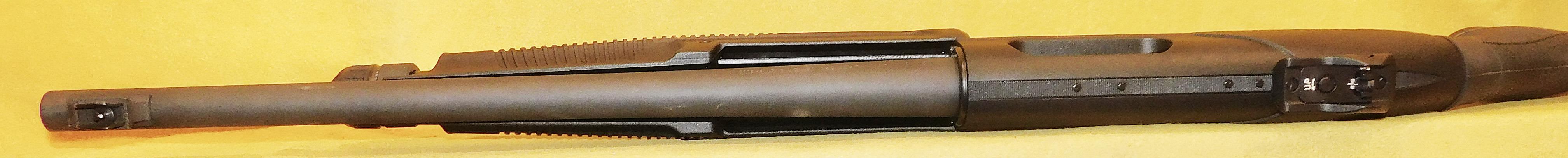 MOSSBERG 500 IN 20 GA. CAL., WITH 24" BARREL. COLOR BLUE. CONDITION 98%. SERIAL NUMBER U854575. MOSSBERG MODEL 500 (PUMP) IN 20 GAUGE, MIRROR BORE PORTED RIFLED BARREL WITH RIFLE SIGHTS AND FIXED CYLINDER CHOKE, PICATINNY SCOPE MOUNT, 2 ¾” AND 3” CHAMBER WITH 14 ¼” L.O.P. 98% OVERALL CONDITION, OUR STOCK # D3934. OUR OLD STOCK # YA14526