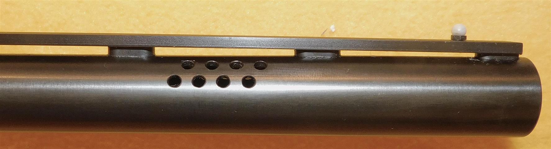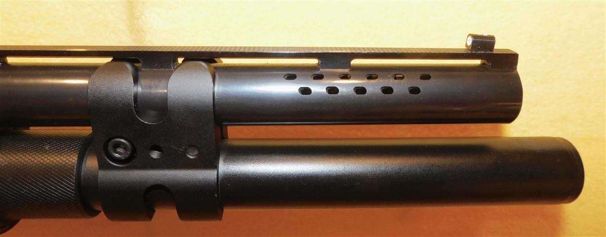 REMINGTON 1100 (CUSTOM) IN 12 GA. CAL., WITH 18 .5" BARREL. COLOR BLUE. CONDITION 98%+ LIKE NEW. SERIAL NUMBER M554709V. REMINGTON MODEL 1100 ULTIMATE TACTICAL COMPETITION SHOTGUN (ALL WORK PERFORMED BY MICHAEL A. LAROCCA MASTER GUNSMITH, WORCESTER MASSACHUSETTS) IN 12 GUAGE CALIBER (2 ¾” CHAMBER), SHORTENED VENT RIB WITH TRITIUM FRONT SIGHT MAG-NA-PORTED MIRROR BORE BARREL, CUSTOM CUT EXTENDED MAGAZINE TUBE, SPEED LOAD GATE, COMBAT BOLT HANDLE, MERCURY RECOIL SUPPRESSOR, WANUT CHECKERED STOCK AND FORE ARM EXCELLENT, 98%+ LIKE NEW OVERALL CONDITION, OUR STOCK # D7764. OUR OLD STOCK # YA15959