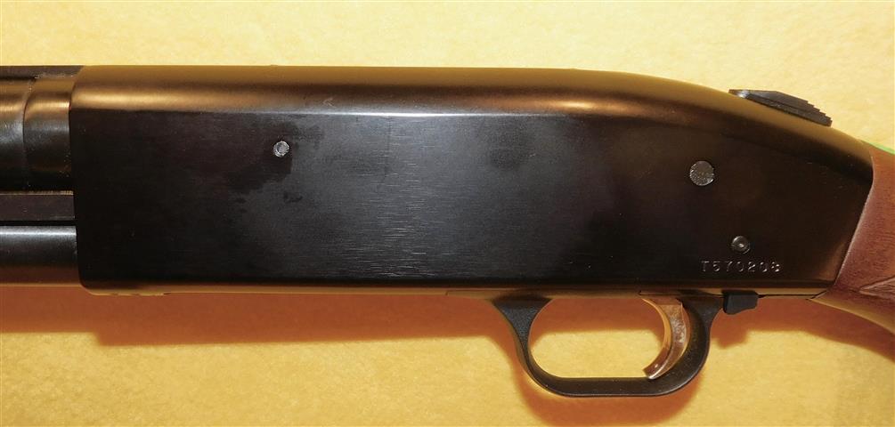 MOSSBERG 500A IN 12 GA CAL., WITH 28" BARREL. COLOR BLUE. CONDITION 96%. SERIAL NUMBER DTB6539. MOSSBERG MODEL 500A PUMP IN 12 GAUGE CALIBER, TWO BEAD VENT RIB IMPROVED FIXED CHOKE BARREL WITH A MIRROR BORE, STOCK AND FORE ARM EXCELLENT, 96% LIKE NEW OVERALL CONDITION, OUR STOCK # D3076. OUR OLD STOCK # YA14091
