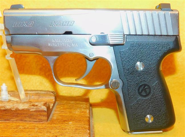 KAHR ARMS MK9, ELITE 98 IN 9MM CAL., WITH 2 .75" BARREL. COLOR STAINLESS STEEL. CONDITION 98%+ LIKE NEW. SERIAL NUMBER CB0496. KAHR ARMS MODEL MK9 ELITE 98 IN 9MM CALIBER, MIRROR BORE, GRIPS EXCELLENT, COMES WITH FACTORY SPARE MAGAZINE, HARD CASE WITH PAPERS, 98%+ LIKE NEW OVERALL CONDITION, OUR STOCK # D8621. OUR OLD STOCK # YA16242