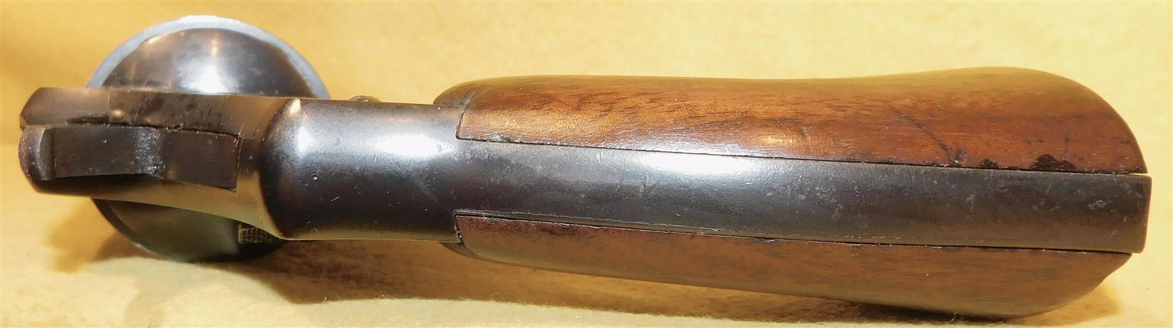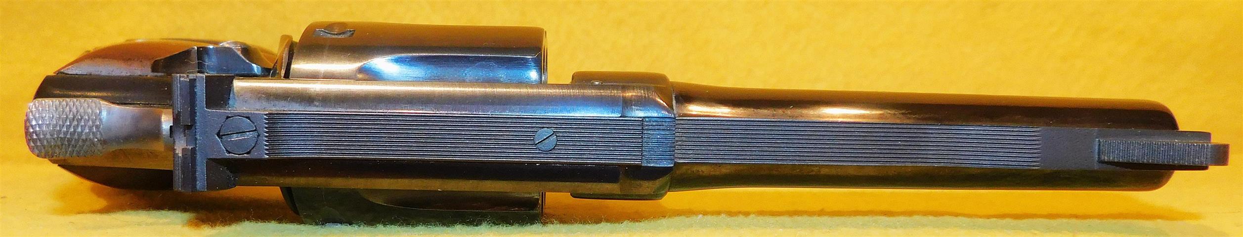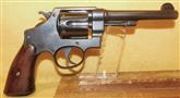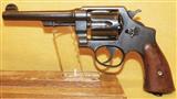 S&W HAND EJECTOR IN .22 L.R. CAL., WITH 6" BARREL. COLOR BLUE. CONDITION 85%+. SERIAL NUMBER 364853. S&W MODEL HAND EJECTOR (CIRCA 1922) IN .22 L.R. CALIBER, BRIGHT BORE, WALNUT CHECKERED GRIPS WITH OUT MEDALLIONS VERY GOOD, ADJUSTABLE REAR SIGHT WITH (U) BLADE, 85% OVERALL CONDITION, OUR STOCK # D7179. OUR OLD STOCK # YA15746