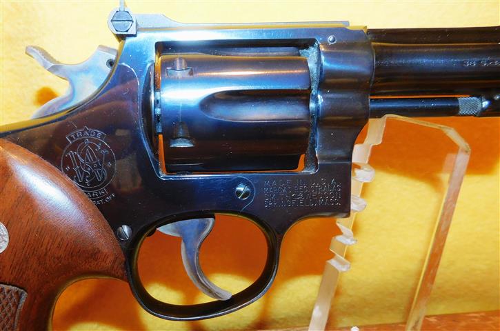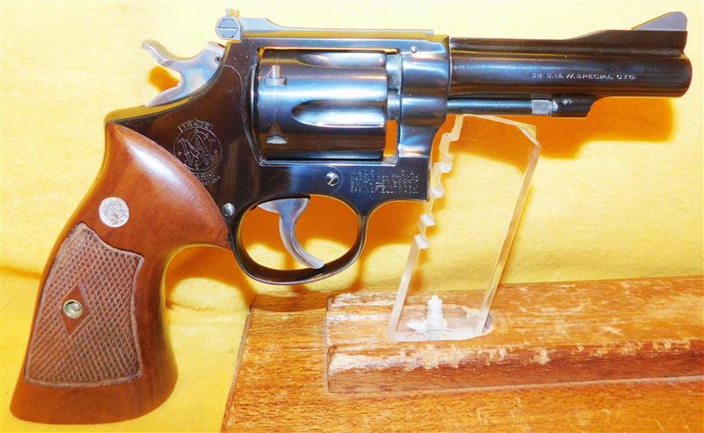 S&W 38 COMBAT MASTER PIECE IN .38 SPECIAL CAL., WITH 4" BARREL. COLOR BLUE. CONDITION 98%. SERIAL NUMBER K299579. S&W MODEL 38 COMBAT MASTER PIECE IN .38 SPECIAL CALIBER, MIRROR BORE 4 INCH BARREL, WALNUT CHECKERED GRIPS EXCELLENT, 98% OVERALL CONDITION, OUR STOCK # D8662. OUR OLD STOCK # YA16256